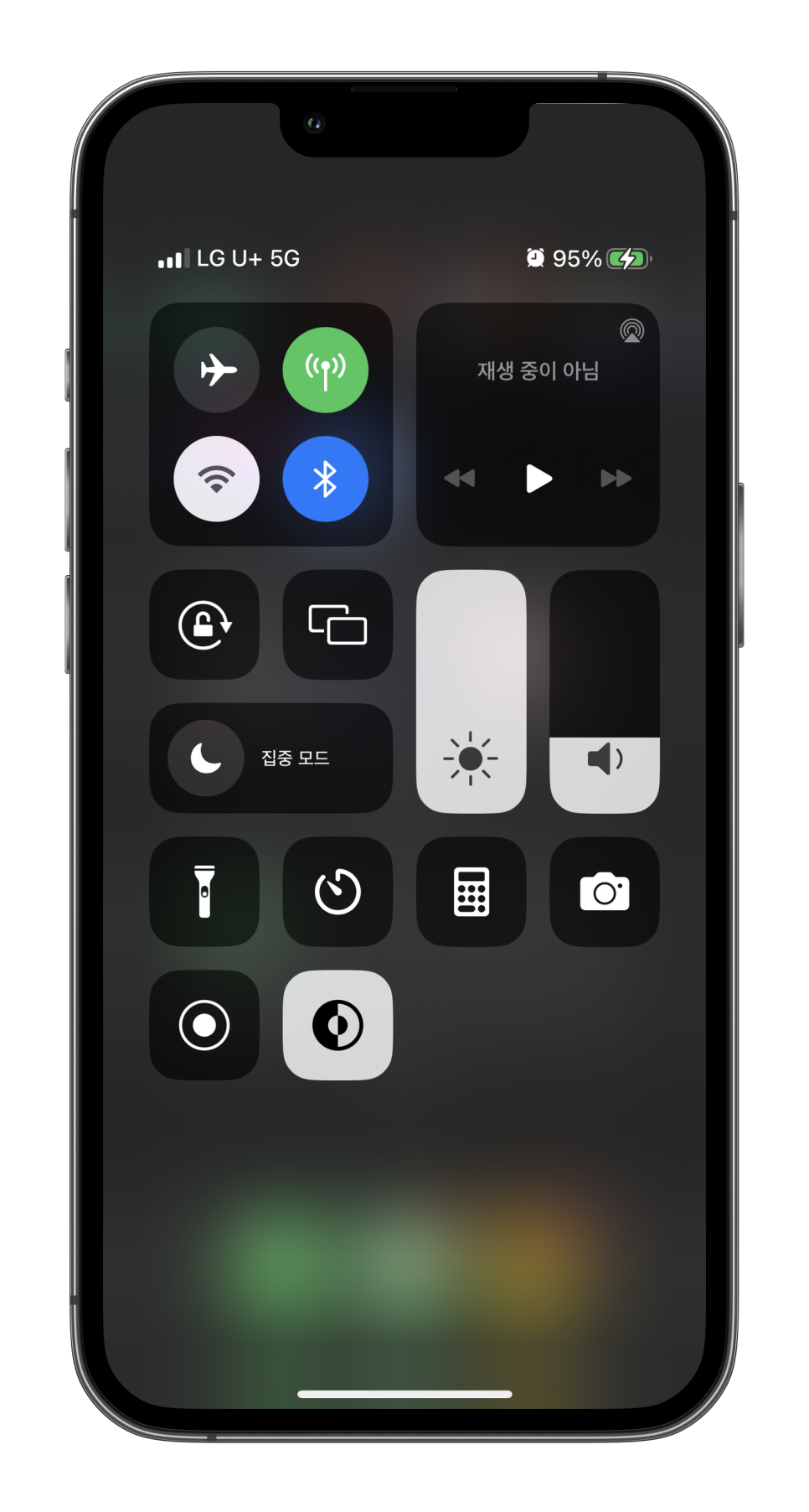 아이폰 화면 위에서 아래로 스와이프 하면 제어센터가 활성화되며 왼쪽 상단에 있는 센터에서 길게 한 번 더 터치하면 센터 창이 활성화된다.