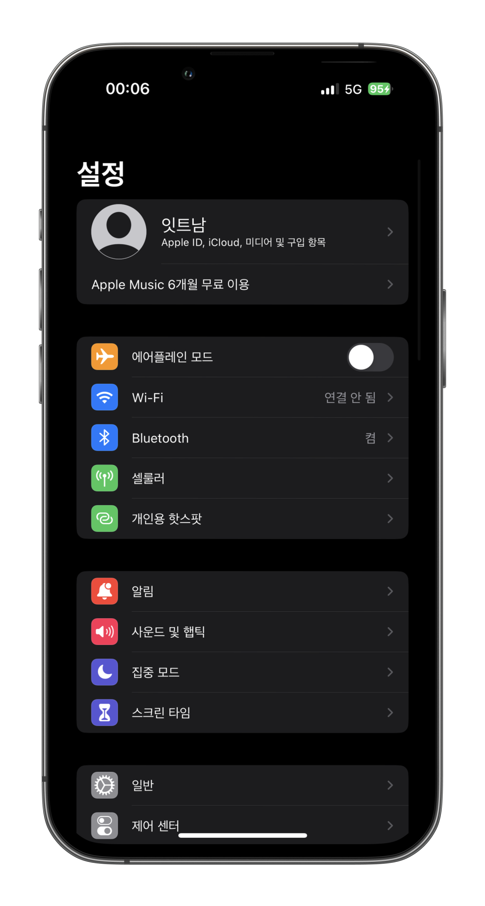 그럼 숨겨져있던 센터가 활성화되면서 개인용 핫스팟 끔을 확인하신 다음 터치하여 활성화시켜주시면 된다.