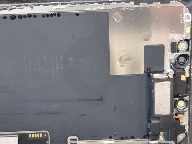 우선 수화음 쪽에 있는 스피커부분이랑 유심을 꽂는 부분에 물이 들어갔어요. 아이폰 방수 된다는 건 정말 믿을 수 없네요. 이미 물기가 들어 온 상태라 세척 건조 작업을 해야 했어요. 확인을 해보니 물자국이 이미 많이 남아 있더라구요. 메인보드 뿐만 아니라 하우징이라는 부분에도 부식이 일어나서 메인보드 수리가 필요했어요. 아이폰 침수 수리비용도 궁금하더라구요.