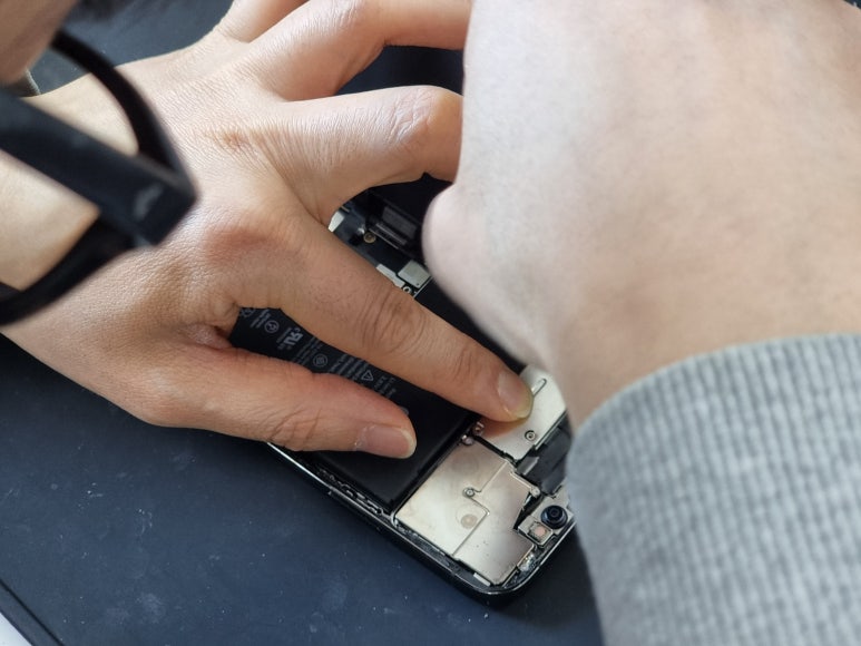 이 안에 아이들이랑 찍은 사진들이 어마어마하게 많아서 저에게는 너무 중요한 물건이기도 하기 때문에 안에 자료를 살리지 못하는 것은 말도 안되는 일이었어요. 이때 드는 생각이 아, 비용이 문제가 아니구나. 안에 있는 자료를 모두 살릴 수 있는 수리 업체를 찾는 것이 급선무 같았어요. 그리고 얼마 있지 않다가 남편에게 연락이 왔는데 수리 업체 중에서 폰픽스코리아를 찾아가라고 알려줬어요.