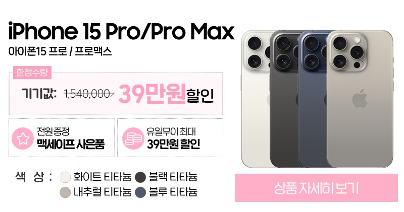 아이폰15프로 256기가 이상은 출고가 자체가 상당히 비싼 편이긴 하지만 제대로 할인 혜택을 받아 구매하는 방법이 있습니다. 특히 성지 모모폰 휴대폰 성지에서 시세를 확인해 보면 최대 39만원 까지 출고가에서 즉시 할인을 적용 받을 수 있습니다.