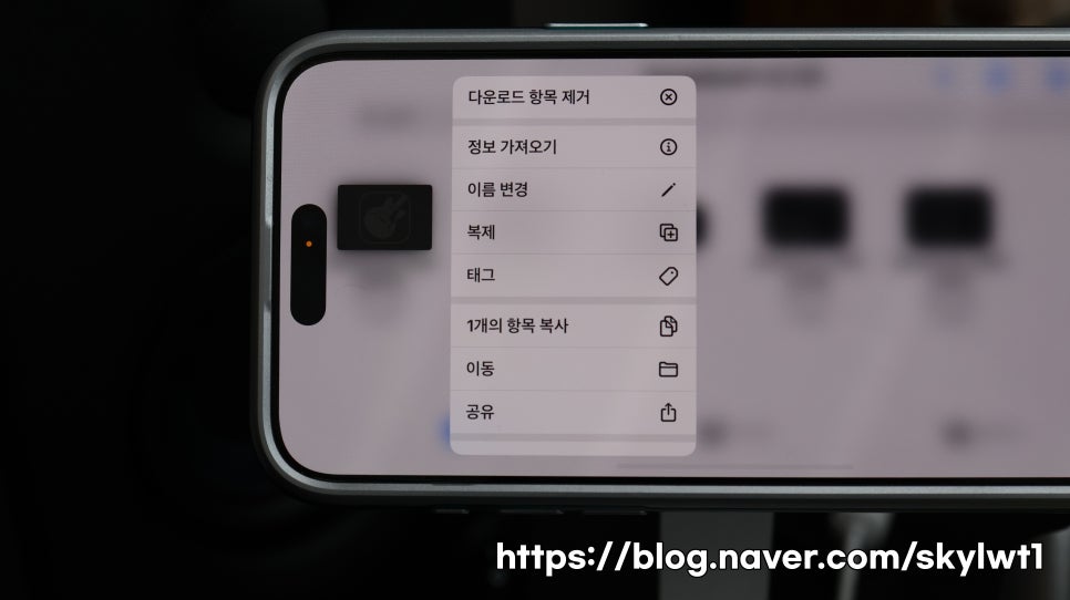 추출한 파일을 꾹 누르게되면 다양한 메뉴 팝업을 확인할 수 있으며, 하단에 위치한 공유 메뉴를 선택합니다.