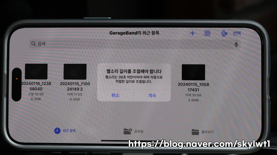 화면 기록을 통해 음원을 녹음할 경우 처음에 대기시간이 3초가 있으니 이점 참고하시길 바랍니다.