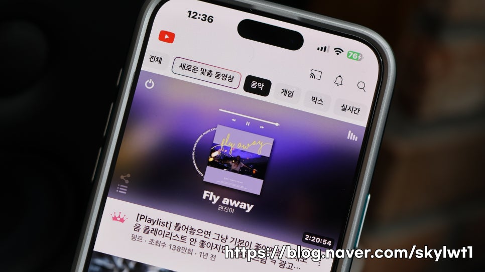 제어센터에 화면 기록 메뉴가 추가되었다면 유튜브를 통해 음원을 추출하고 싶은 음악을 검색해서 플레이를 해주시면됩니다.