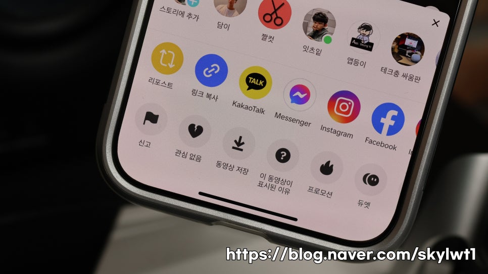 틱톡에서 음원추출은 무척 간단하며, 요즘 유행하는 빵빵이 음원도 추출이 가능하며 원하는 음악이 흘러나오는 영상을 찾으신 뒤 오른쪽 하단에 위치한 공유하기 메뉴를 선택합니다.