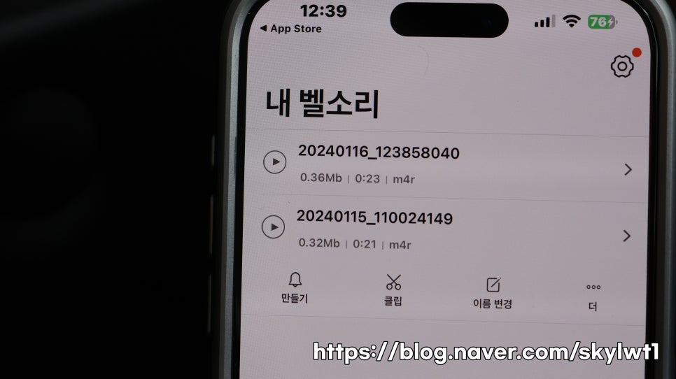 조금전 만들어진 벨소리가 최종적으로 추가된것을 볼 수 있습니다. 아래 영상을 통해 다시 확인도 가능합니다.