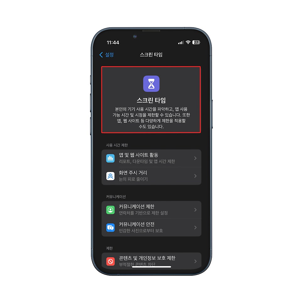 그럼 기존에 표시되던 스크린 타임 그래프가 사라진 걸 확인할 수 있으실 거예요! 여기까지 완료하셨다면 아이폰 스크린타임 삭제 및 비활성화가 완료된 거예요! 참 간단하죠?