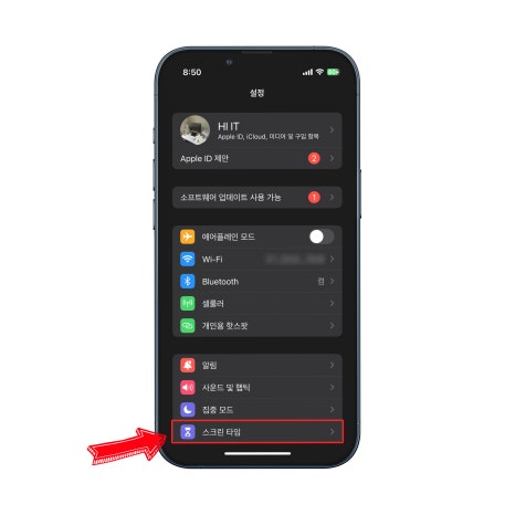 우선 아이폰 스크린타임 비활성화를 하기 위해서는 톱니바퀴 모양의 아이콘 "설정"으로 진입해 스크롤을 조금만 아래로 내려 스크린 타임 항목을 찾아 터치해 주세요.