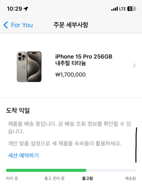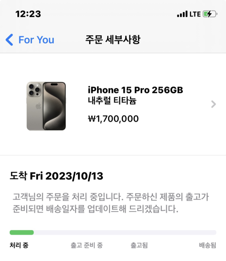 경쟁률이 엄청 치열하여 배송이 뒤로 밀릴 수도 있다는게 싫었고, 원하는 색상/용량을 포기해야하는 상황이 올까봐 안전하게 경쟁률이 낮은 애플 공홈에서 결제했다.