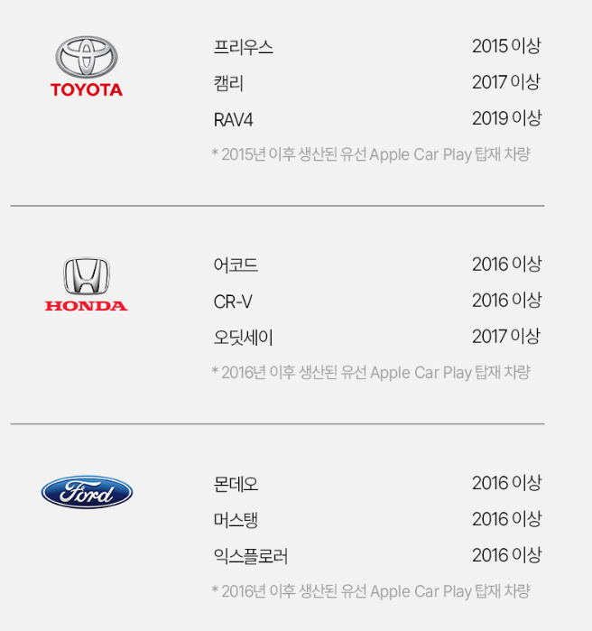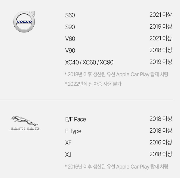 현대 기아 벤츠 BMW 등 유선카플레이를 지원하는 차종들은 문제 없이 사용이 가능하며
