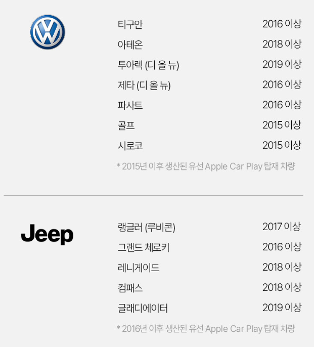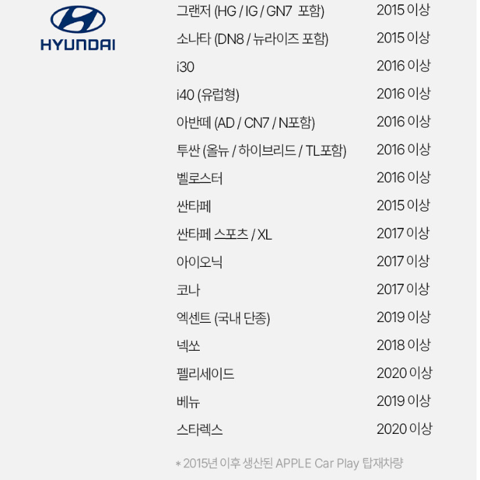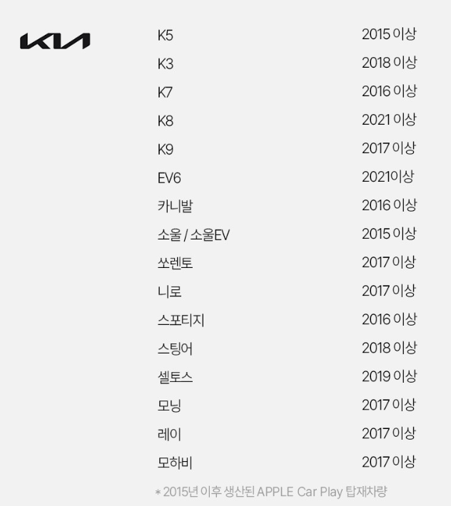 2015년 이후 생산 된 애플카플레이가 탑재된