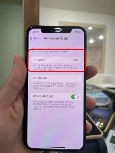 우측사진을 보면 아이폰11프로 배터리교체 성능치 표기까지 말끔하게 되었죠?