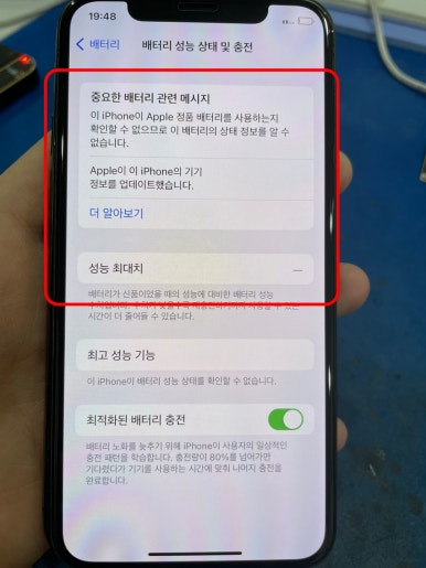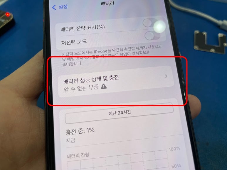 알수없는 부품, 중요한 배터리 관련메세지가 뜨게끔 수리를 할수밖에없는 곳이 있고,