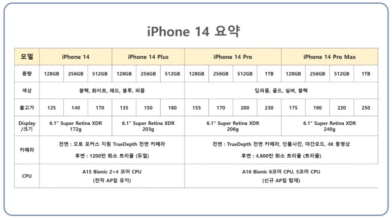[아이폰14 사전예약 접수중] 9/30일 시작 가격 가격표 10/7일 출시