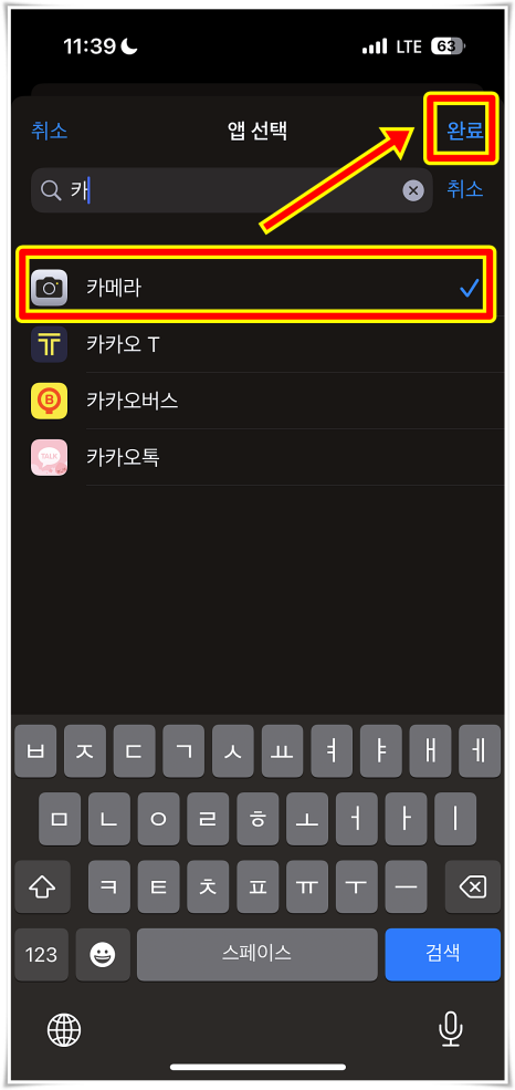 직접 카메라 앱을 내려가면서 찾거나, 검색을 통해서 찾아준 다음 완료를 눌러주었어요.