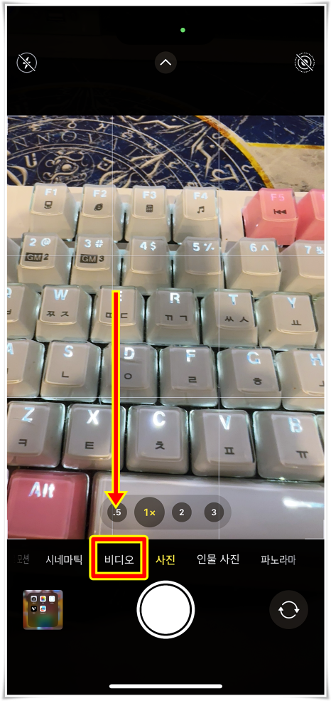 우선적으로, 카메라 앱을 실행시켜주었어요. 이후에 사진에서 비디오 탭으로 형식을 변환시켜주었어요.
