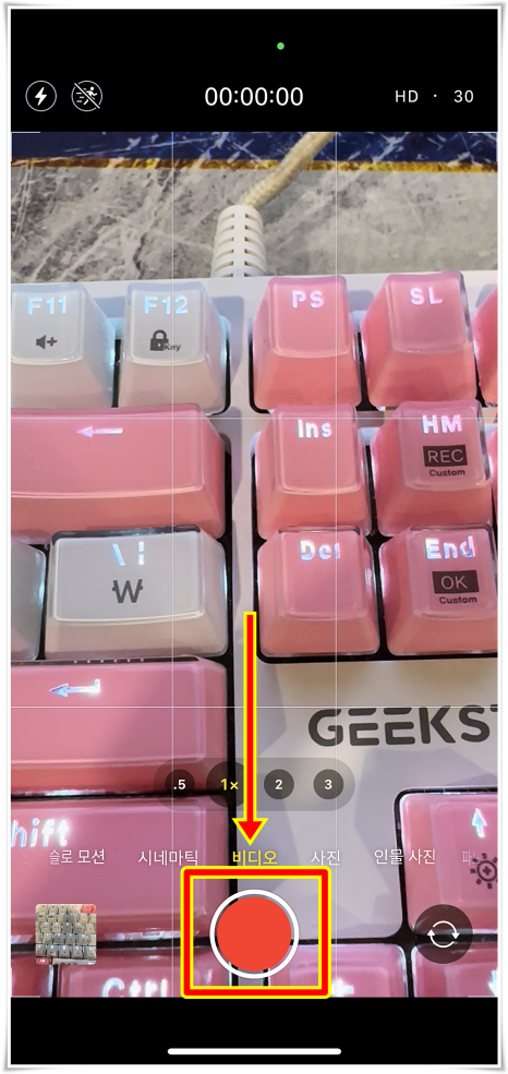 그렇게 되면 빨간색 녹화 버튼이 보였는데요. 이걸 누르게 되면 촬영이 시작되었어요.
