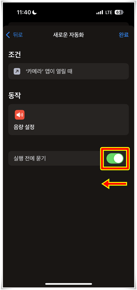 또한, 실행 전에 묻기 버튼이 처음에는 켜져 있는데 슬라이드 해서 Off로 꺼주도록 하였어요. 계속해서 물어보면 번거롭기 때문이에요.