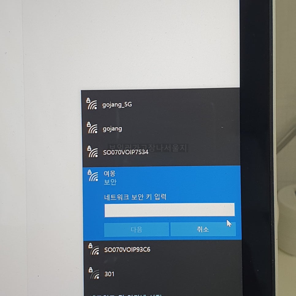 원활하게 연결하기 위해서는 해당 아이폰 개인용 핫스팟 네트워크 비밀번호를 입력해주고 다음 버튼을 눌러 연결을 진행하면 되겠습니다.