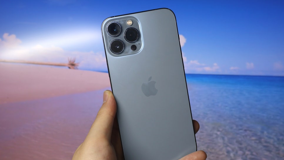 아이폰13 프로맥스의 메인 색상은 시에라 블루로 밝은 색상보다는 파란색에 회색이 섞인 느낌입니다. 은은한 느낌으로 오래 사용해도 질리지 않는 색상입니다.