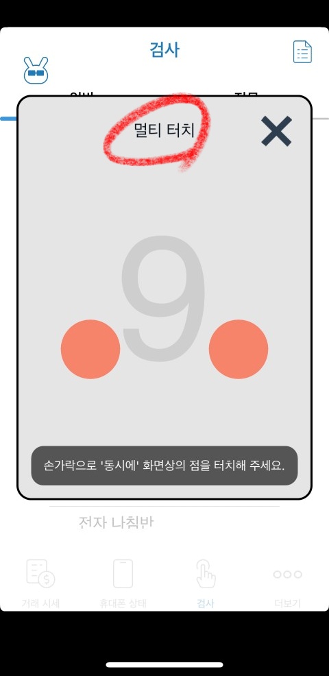 멀티 터치가 작동되는지 확인하는 항목인데