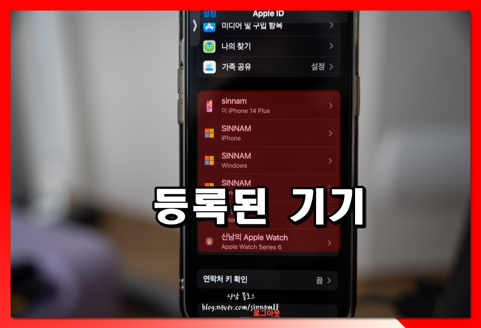 3. 하단, <등록된 기기>목록을 보면, 현재 내가 사용하고 있지 않은 기기가 등록되어 있거나 혹은 제거가 되어 있는 경우 아이폰 해킹 알림 후 초기화까지 진행하셔야 정상적인 상태가 된다고 볼 수 있거든요.