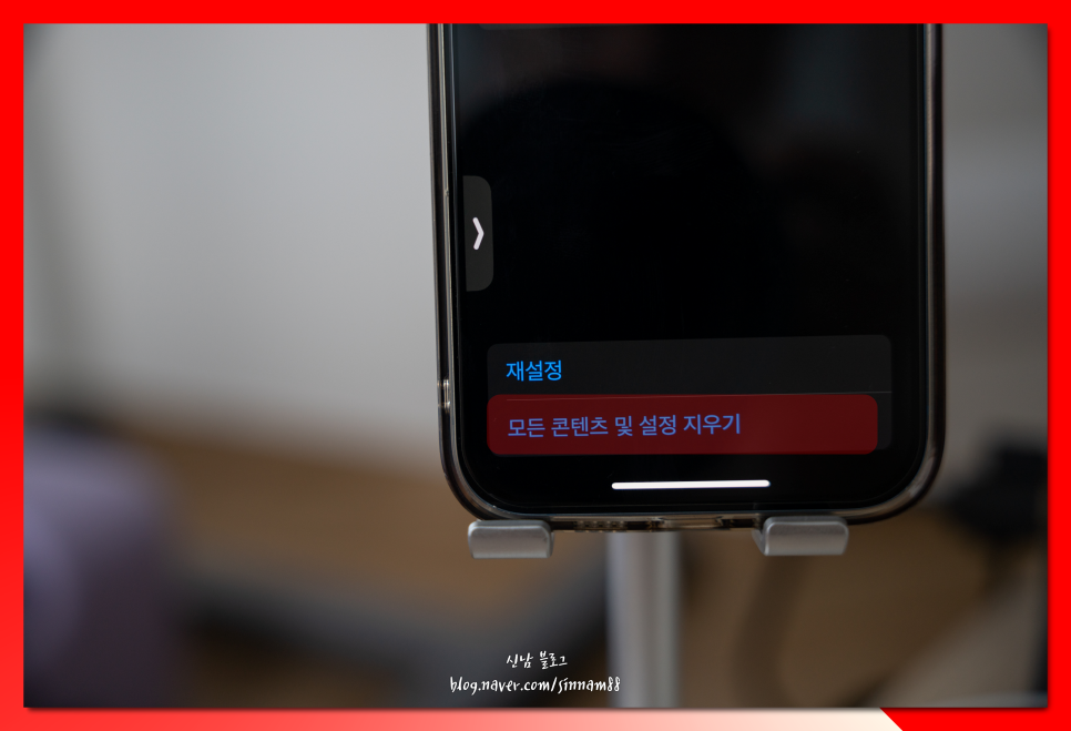 4. 모든 콘텐츠 및 설정 지우기를 선택해주세요.