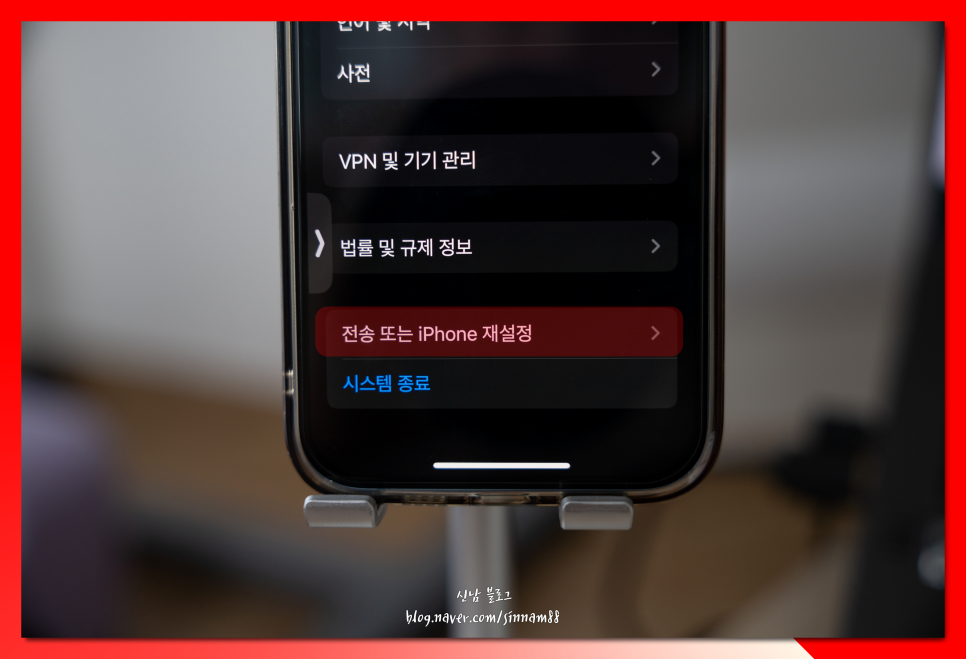 3. <전송 또는 iphone 재설정>탭을 누릅니다.