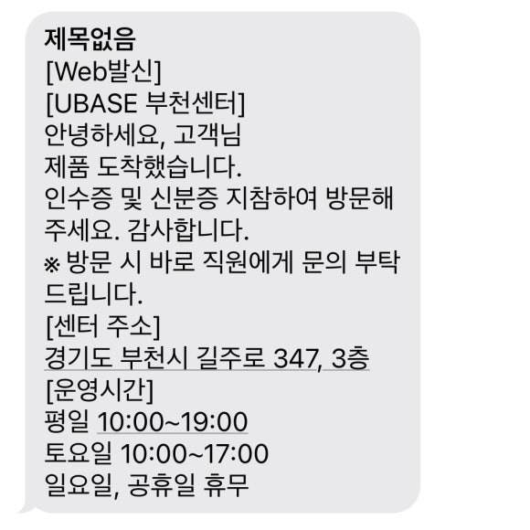이틀 후 주문한 유심트레이가 입고되었다는 문자를 받고 유베이스에 다시 방문했어요.