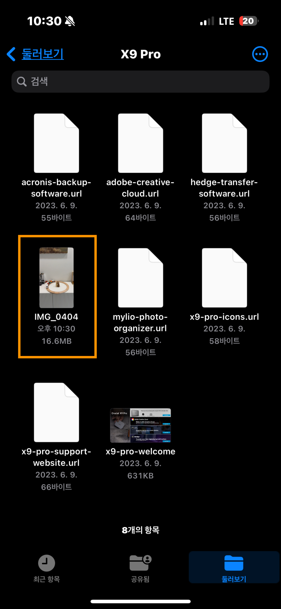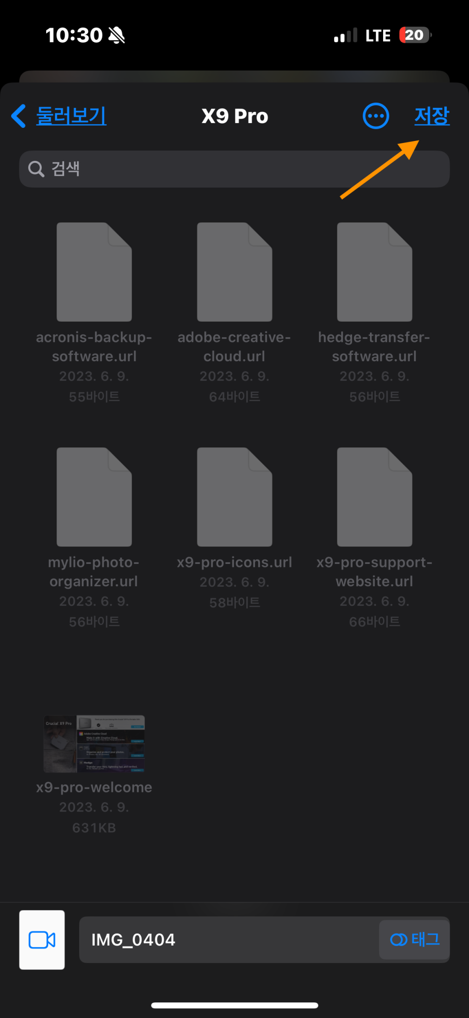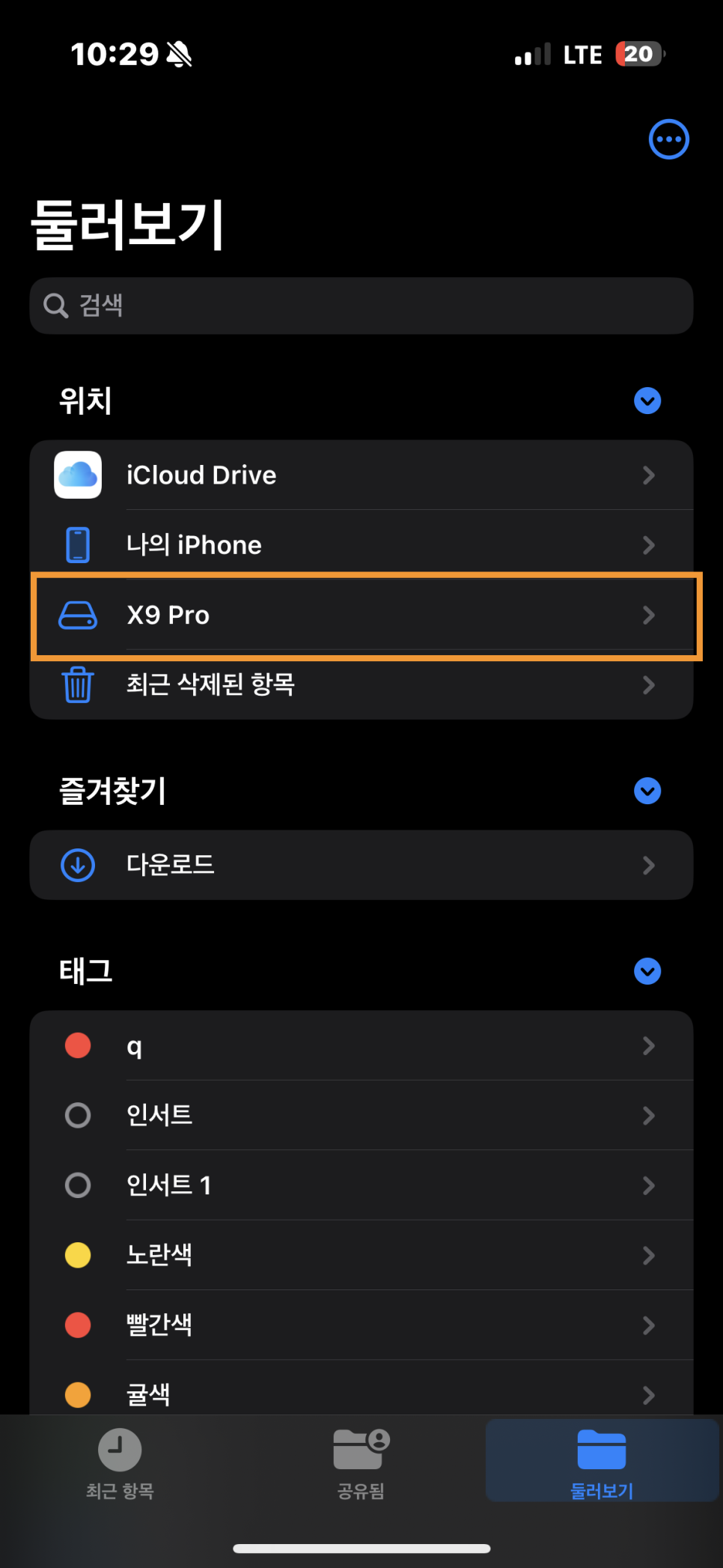 아이폰의 기본 어플인 파일에 들어가보면 X9이 잘 연결이 되어 있는 모습을 볼 수 있다.