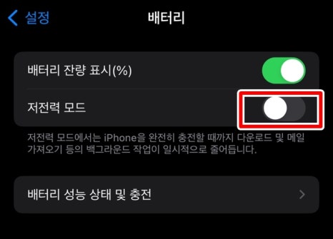 세 번째, 배터리 저전력 모드를 비활성화해 주세요.