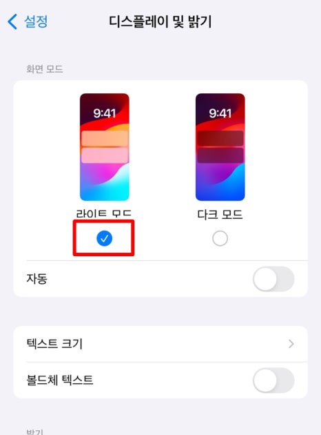 아이폰의 기본 설정은 라이트 모드입니다.