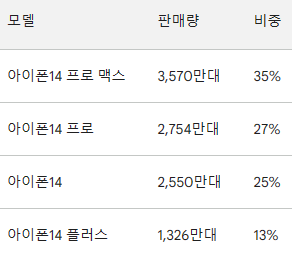 #아이폰14 모델별 판매량