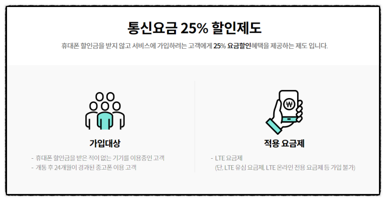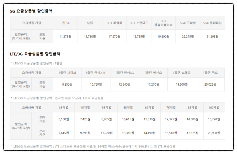 요금제 수준이 높아 요금의 25%를 할인 받는게 더 나은 것이 됩니다.