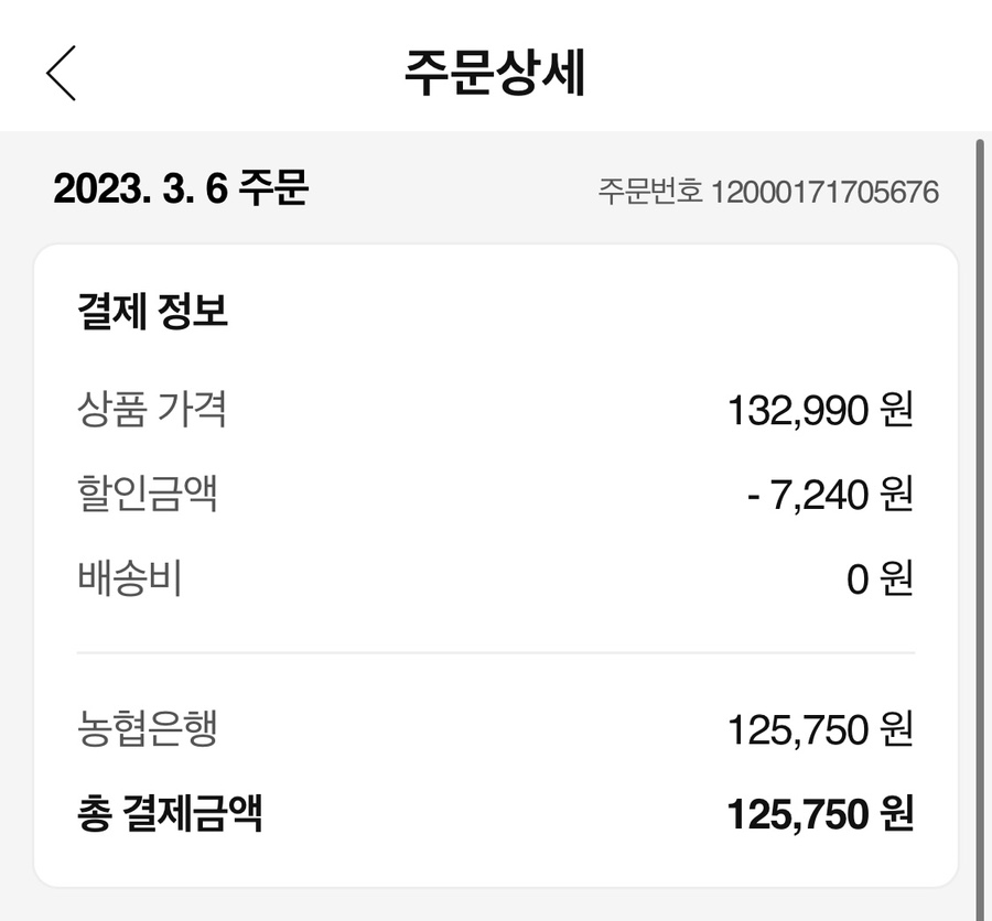 2가지 해서 총 액은 125,750원….
