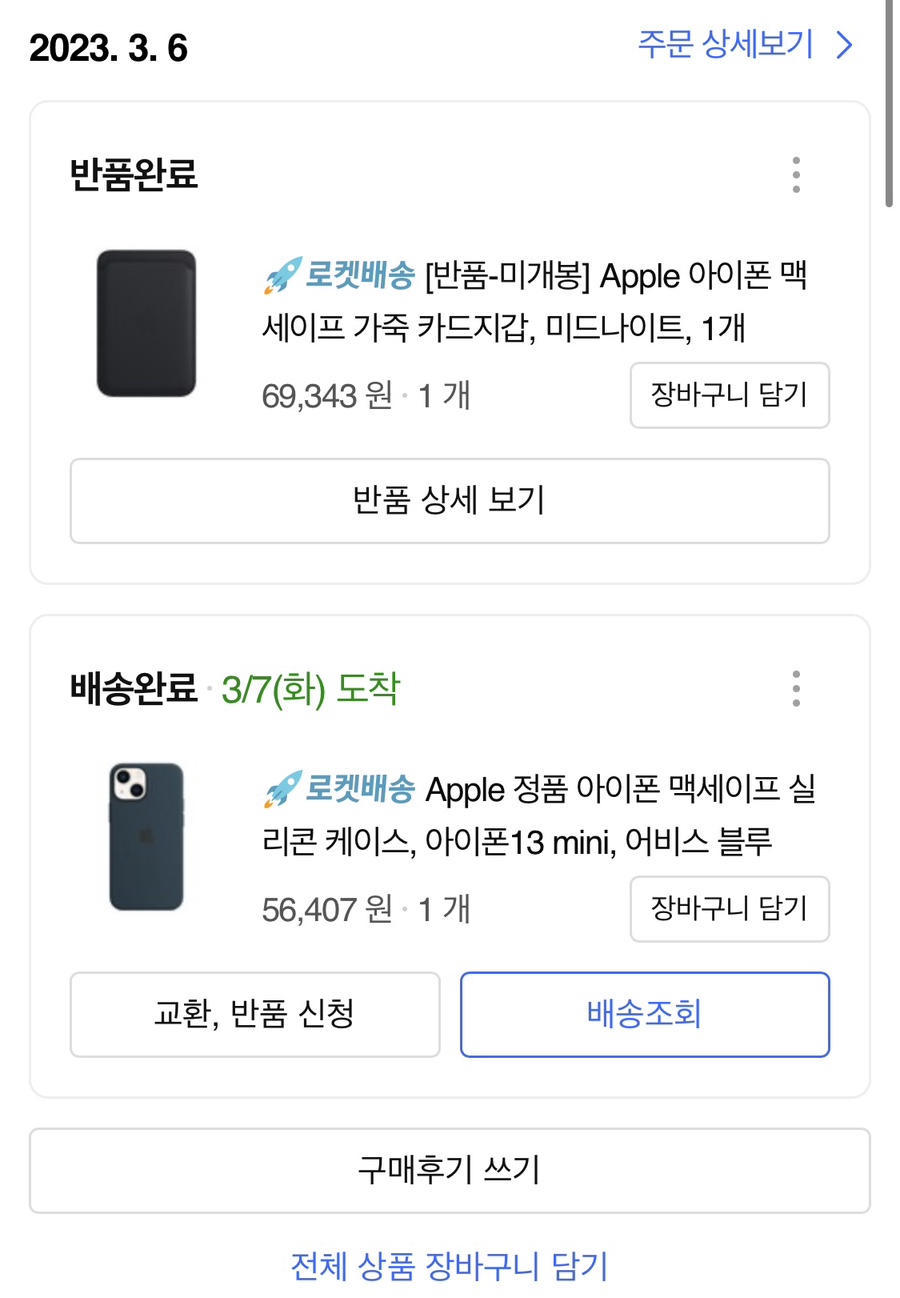 이번에도 정품 케이스와 카드지갑을 주문해버렸습니다.