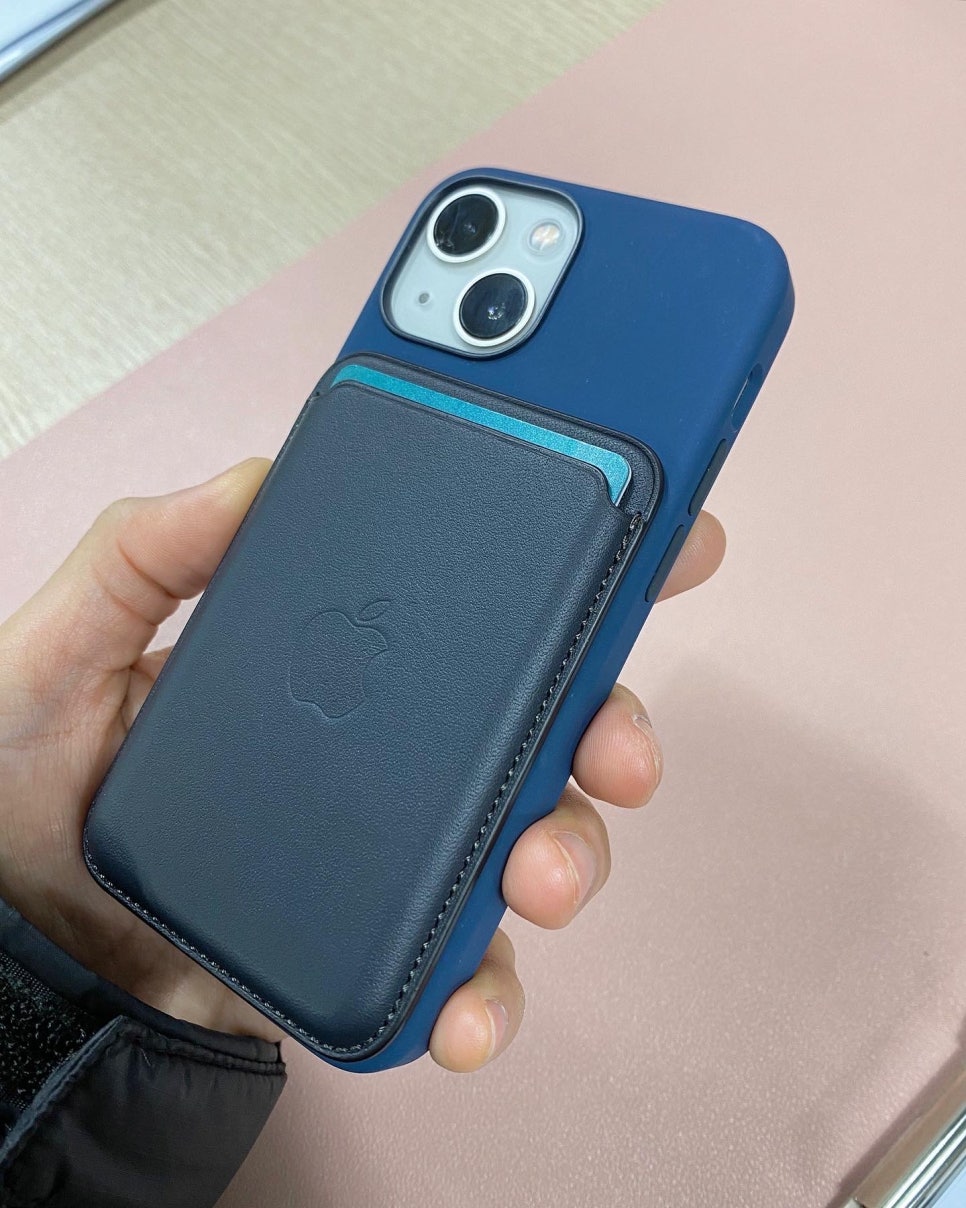 아이폰13 미니 정품 맥세이프 실리콘 케이스 어비스블루 / 정품 맥세이프 카드지갑 미드나이트 조합 후기