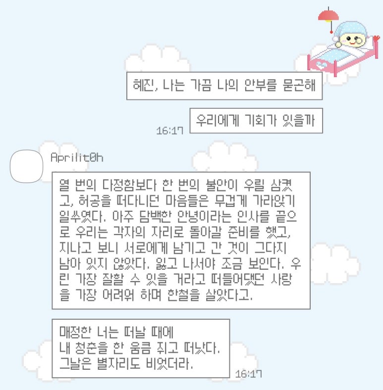 가독성은 쪼금 떨어지는 편이지만 귀여우니까 용서 ( ̳• ·̫ • ̳)