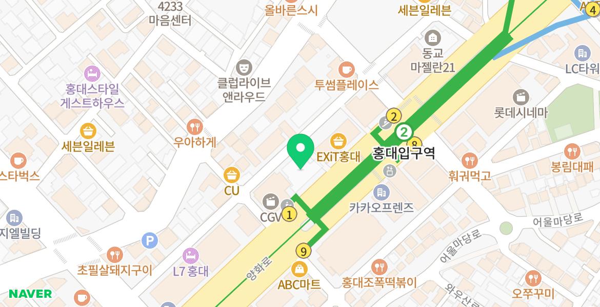 *위치: 홍대입구역 1번 출구 도보 1분 이내