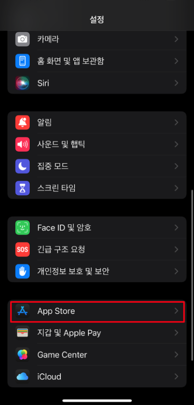 App Store 옵션을 찾고 선택한다.