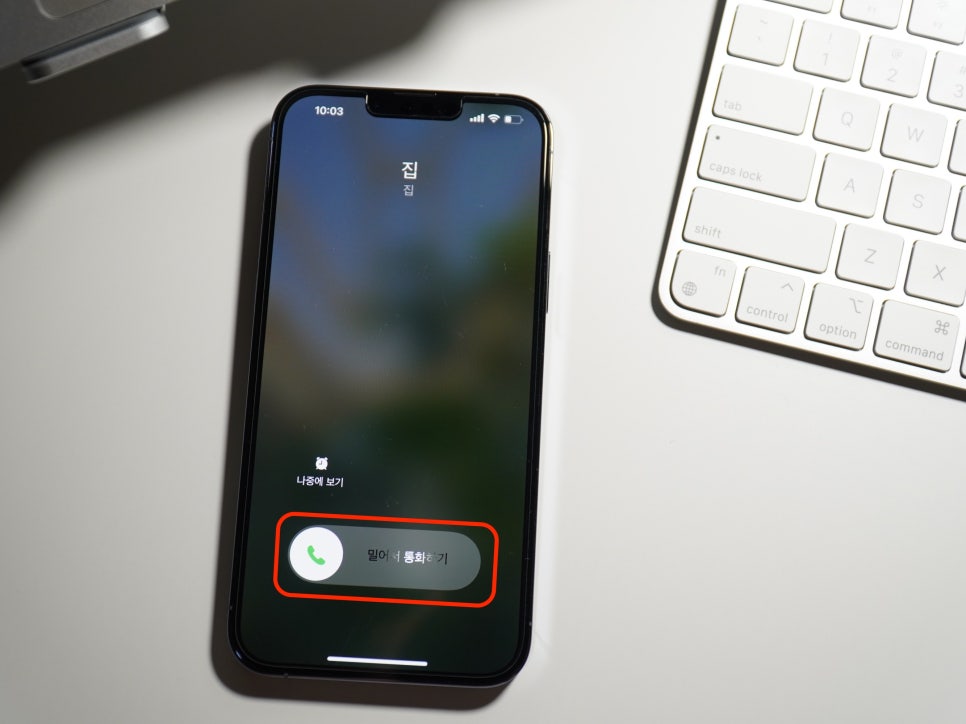 아이폰은 잠금 상태에서 전화가 오면 위 사진과 같이 밀어서 통화하기 슬라이더만 표시되고 잠금 해제된 상태에서 전화가 들어오면 거절 버튼이 표시돼요. 하던 일이 있으면 전화를 거절할 수 있게 만들어 둔 거고 하던 일이 없을 땐 전화에 응답하기만 할 수 있게 해둔 거 같아요.