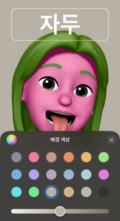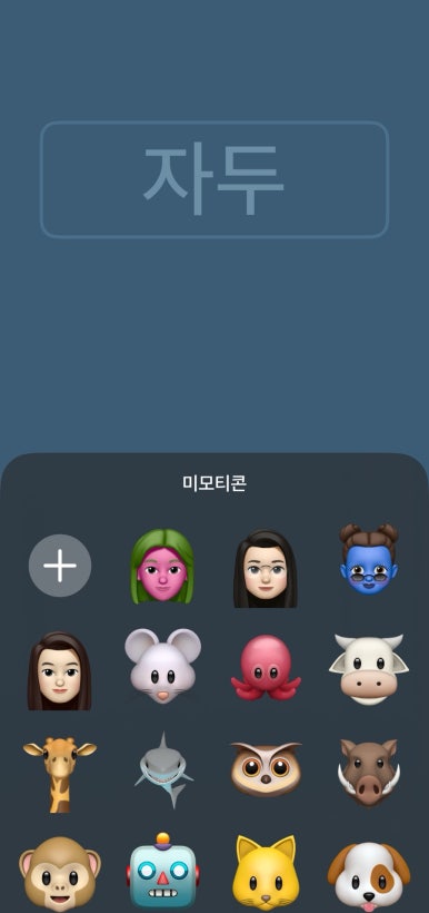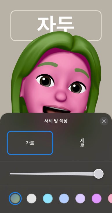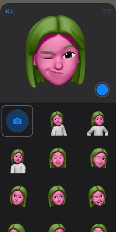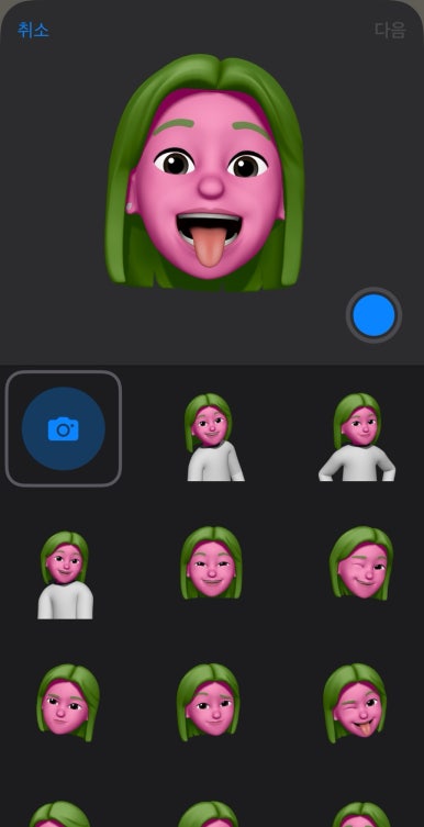 저렇게 카메라, 사진, 미모티콘, 색상 선택지가 있어요