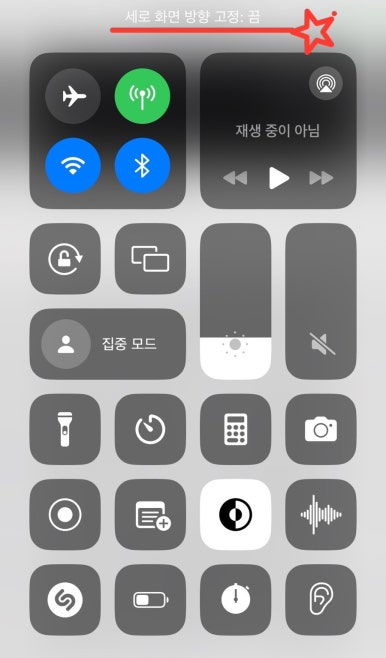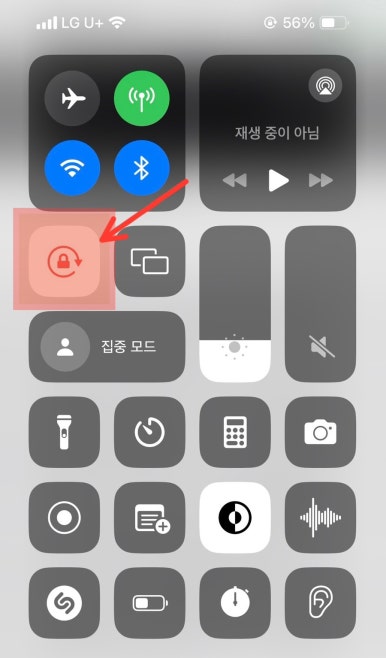 화면을 아래로 스와이프해서 회전 잠금을 풀어줍니다
