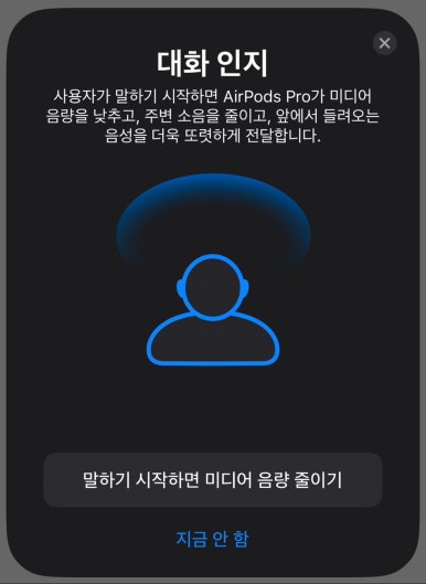 맞춤 음량 기능도 있고 주변인지를 더 잘 할 수 있게됐어요. 말하기 시작하면 미디어 음량을 줄이는 기능도 생겼답니다!!!
