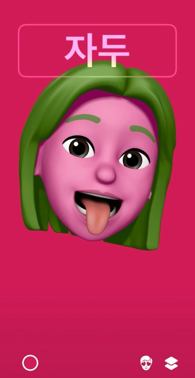 얼굴을 인식해서 표정을 짓고 저 파란색 버튼을 눌러 촬영해보았어요.