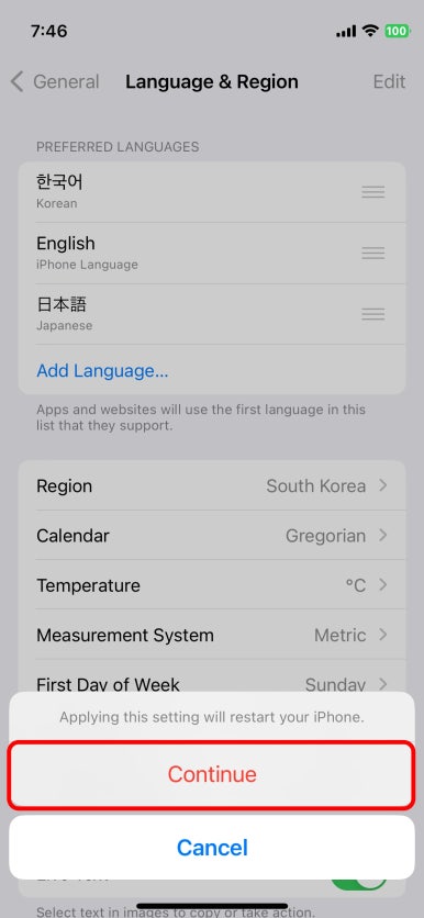 반대로 해외에서 아이폰을 구매하여 외국어에서 한국어로 기본 언어 설정을 바꿔야 하는 경우도 있을 수 있다.