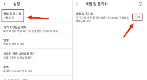 3. 그 다음에 [백업 및 동기화]를 켭니다.