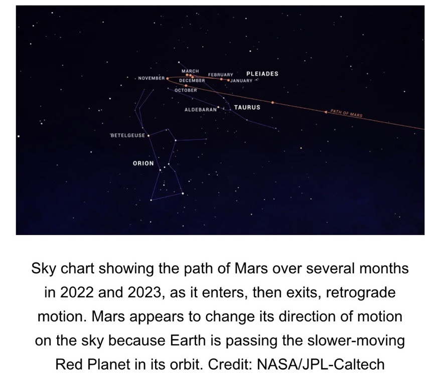 이렇게 2022~2023의 몇 달 간 화성이 황소자리쪽에 머물다 간다고 한다.