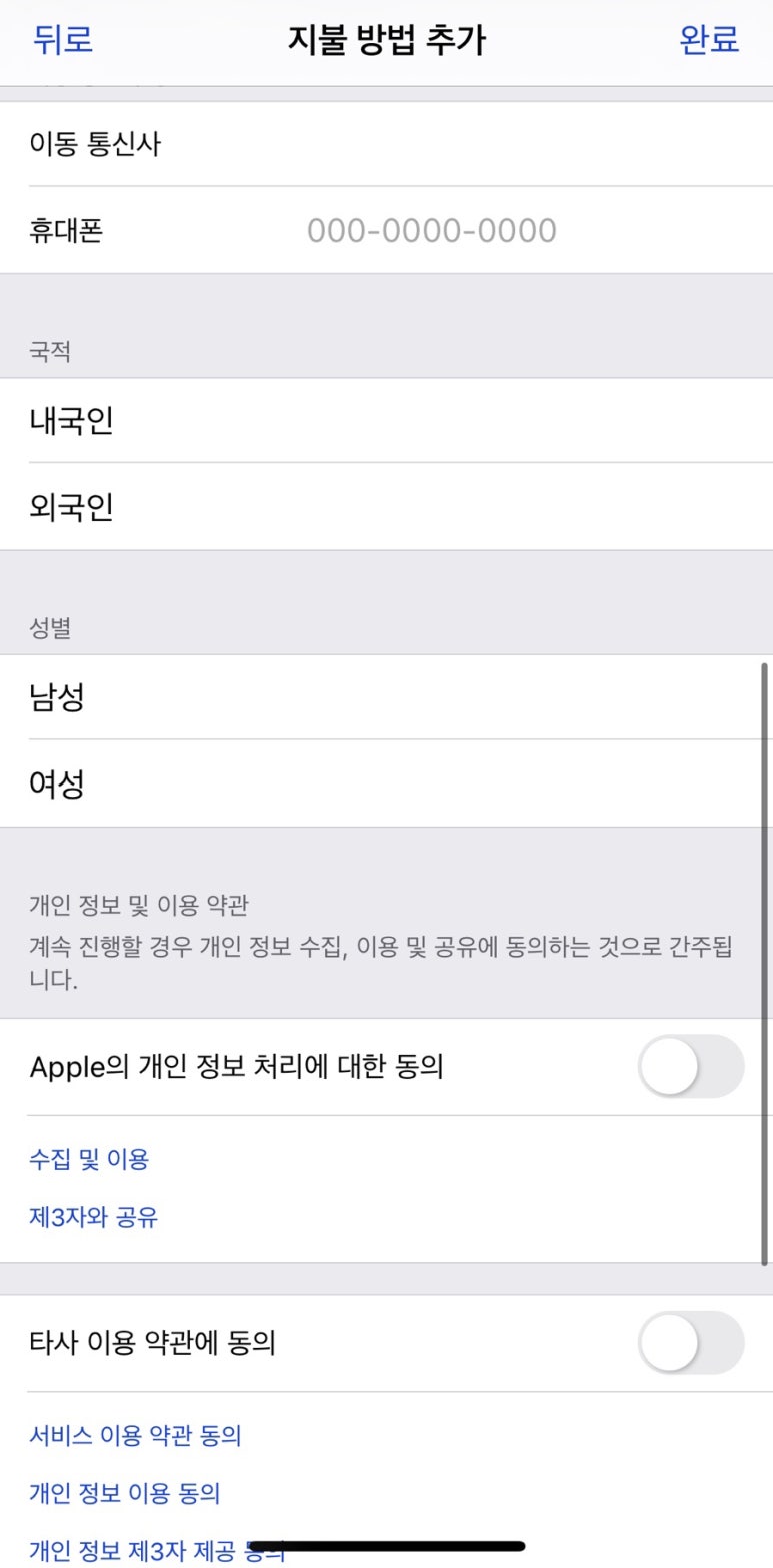 아이폰 지불 방법 추가 및 버블 결제 방법이었습니다.