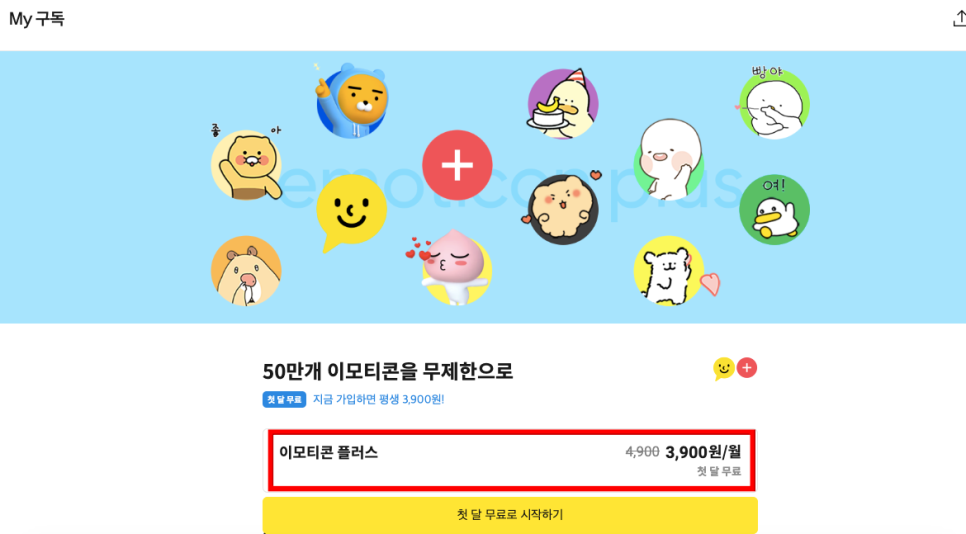 PC 결제 화면을 우연히 보다가, 카카오톡 이모티콘 플러스가 3,900원 이란 사실을 알게 되었답니다.